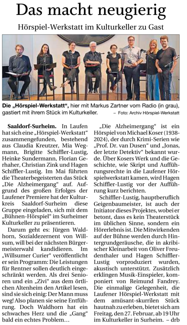 Wir werden auch im Jahr 2026 einheimischen Kulturschaffenden aller Art, für verborgene