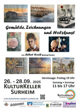 Außerdem finden in unserem Kulturkeller ganzjährig Ausstellungen statt, die bei den Veranstaltungen, die bei den laufenden Veranstaltungen besichtigt werden können.