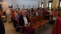 Unter den über 60 Besuchern konnte Franziska Hofbauer-Ott im Namen des Kulturkreises auch zahlreiche syrische Gäste begrüßen. Auf das Semesterthema „Literatur aus dem Nahen Osten“ zurückblickend, resümierte sie: „Es war sehr spannend, ständig mit zwei Welten konfrontiert zu sein, einmal mit der schillernden, bezaubernden Welt der Literatur, die uns Syrien zeigt und zum anderen mit der harten Realität der Fernsehbilder und der Menschen, die zu uns geflohen sind.“ Helga Castellanos, selbst erfahrene Autorin und Leiterin des Literaturkreises, begrüßte den Gast: „Damaskus, Herr Taufiq, war uns vor einem halben Jahr noch fremd und unbekannt. Aber jetzt kennen wir uns schon aus in Damaskus. Die Stadt mit ihren Menschen ist uns beinahe vertraut. Wenn sie uns jetzt nach Damaskus führen, werden wir also ein Wiedersehen mit Vertrautem feiern. Auf Anhieb vertraut schienen die Besucher mit Suleman Taufiq gewesen zu sein. Der gemütliche ältere Herr mit Schnauzbart und wallendem Seitenhaar, der da auf der Bühne im kleinen-feinen Kulturkeller am Lesetisch saß, strahlte eine hintergründig-verschmitzte und einnehmend sympathische Art aus. Mit seinen ersten Sätzen verstärkte sich dieser Eindruck noch: „Ich bin heute das erste Mal in Bayern, aber ich habe gelesen, dass die Bayern aus dem Orient stammen.“ 1953 in Beirut geboren und in Damaskus aufgewachsen, kam Suleman Taufiq 1971 nach Deutschland, wo er Philosophie und Komparatistik (vergleichende Literaturwissenschaft) studierte. Seit 1986 lebt er als freier Schriftsteller und Publizist mit seiner Familie in Aachen. Der Autor hat sich als Lyriker, Erzähler und Übersetzer arabischer Literatur einen Namen gemacht und auch Radiohörspiele geschrieben. „Man fragt mich manchmal, warum ich Schriftsteller bin und ich antworte, dass ich nichts anderes gelernt habe als das Schreiben“, sagte er. Dass Taufiq dieses Handwerk allerdings perfekt beherrscht, stellte er mit Leseproben aus seinem Ende 2015 erschienenen Roman „Café Dunya: Ein Tag in Damaskus“ eindrucksvoll unter Beweis.